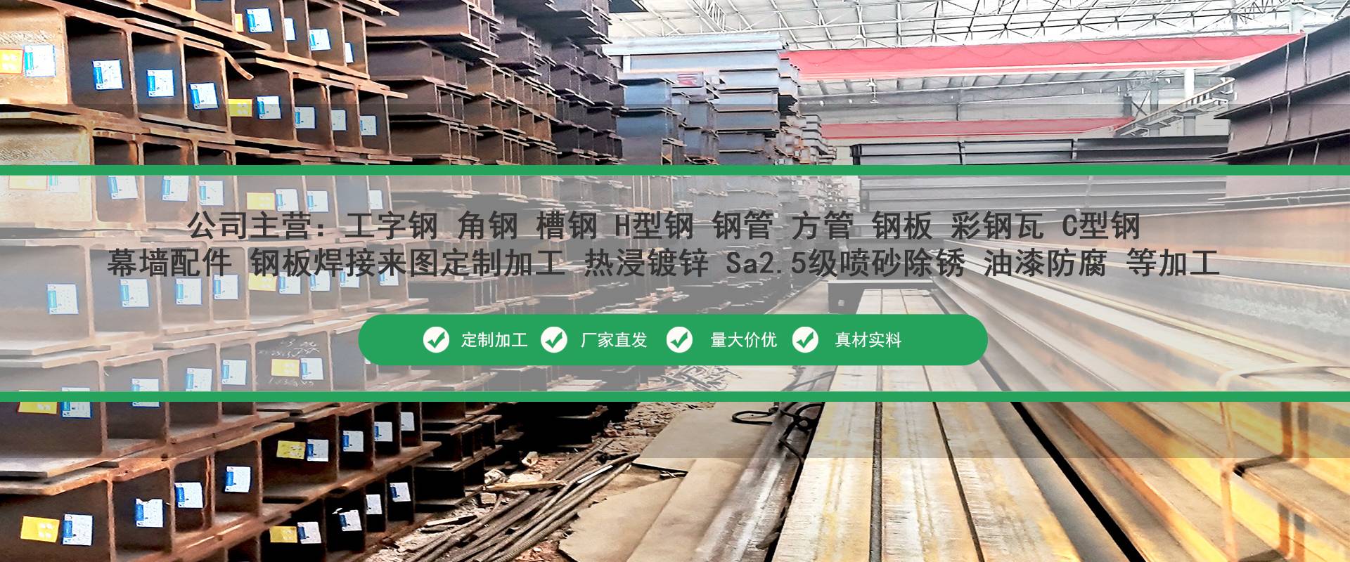 廣東佛山京錦鋼鐵是華南地區(qū)大型鋼鐵貿易商,廣東華南鋼材現貨批發(fā)交易,主營工字鋼、槽鋼、角鋼、H型鋼、鋼管、鋼板等,型號規(guī)格齊全,批發(fā)價格更優(yōu),公司配有鋼管防腐加工廠,熱浸鍍鋅生產線二條,鋼材Sa2.5級噴砂,拋丸除銹,高頻焊接、折彎、沖孔、鋼板切割、等配套加工廠歡迎來電咨詢。